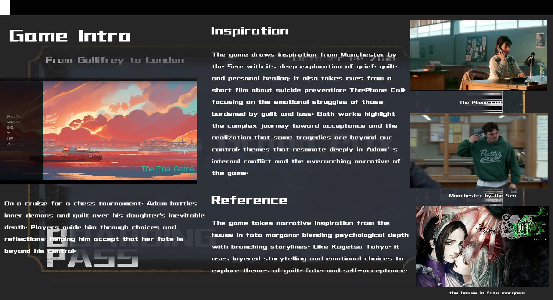 Anqi Wang Game Designer Virtual World Architect Narrative Director Rules Player Experienced in game design Portfolio Details Your browser does not support the video tag. ← Back ← Back 0%